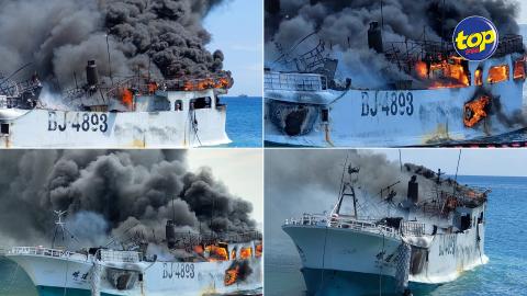 Main picture A Bain des Dames, le Ruey Chien Tsai 112 à nouveau la proie des flammes : Des traces de carburant ont été décelées sur les rochers et autour du bateau voir plus