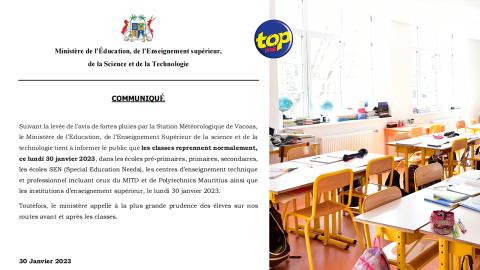 Main picture Après la levée de l’avertissement de pluie torrentielle et de fortes pluies : Les classes reprennent normalement ce lundi voir plus