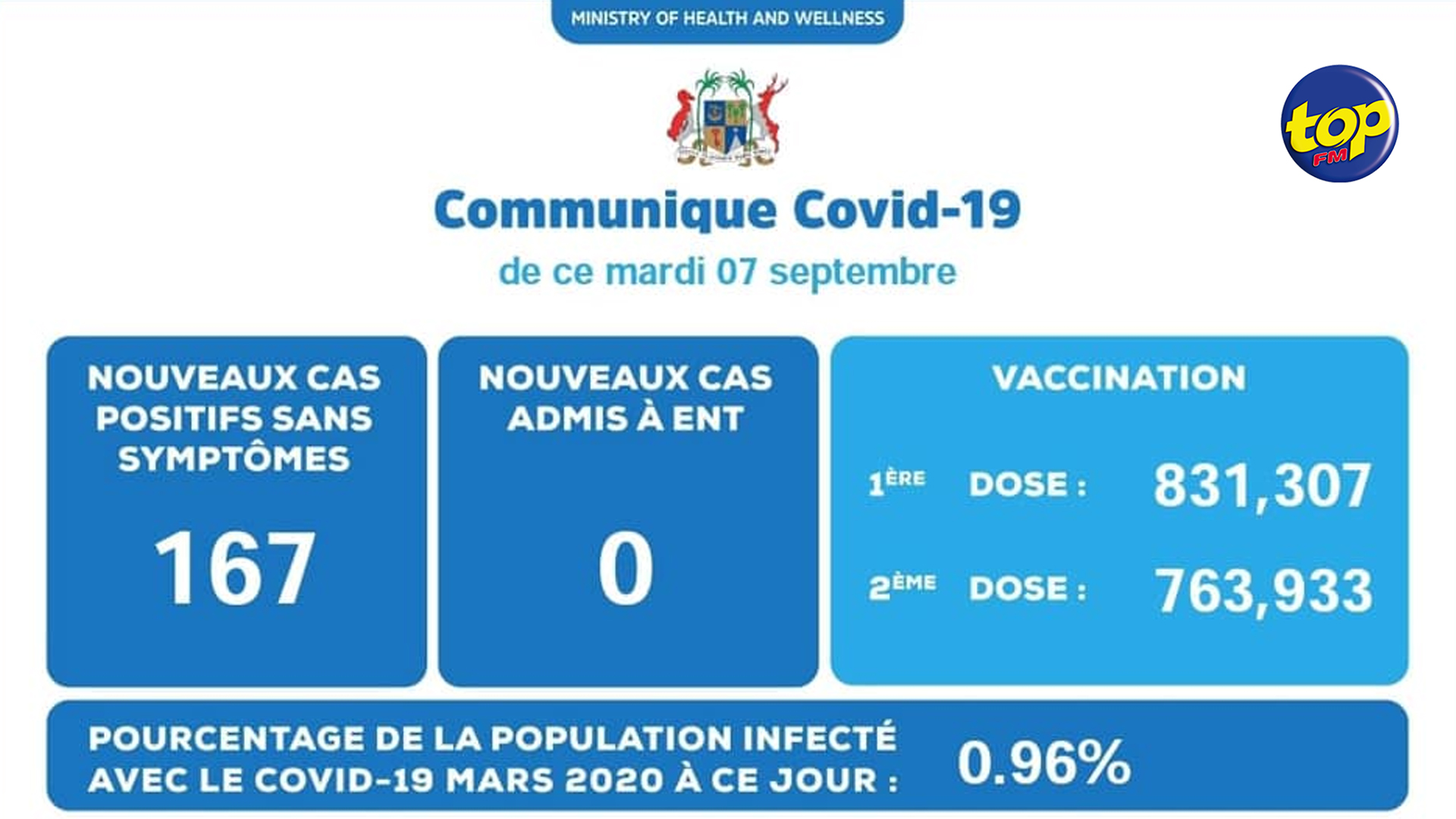 Chiffre avancé par le ministère de la Santé dans un communiqué émis ce mardi. 167 patients sont asymptomatiques et aucun patient n’a été admis à l’hôpital ENT.