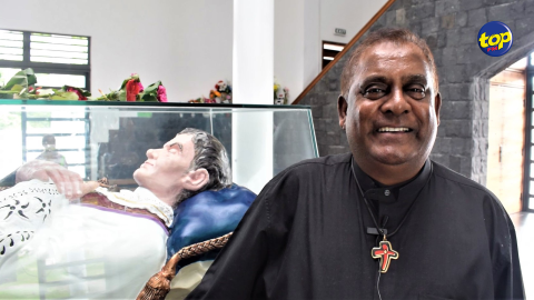 Main picture Début du pèlerinage du Père Laval ce soir : « Ena bocou dimounes pé caroter, pé marche derrière… nous bizin solidaire », affirme le père André Sunnassee voir plus