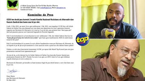 Main picture 5 ans après : Deux dirigeants de Resistans ek Alternativ convoqués au Central CID ce jeudi pour une manifestation en 2017 voir plus