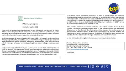 Main picture Campagne sucrière 2025 : Coup d’envoi prévu le 16 juin, une récolte estimée à 220 000 tonnes, en baisse par rapport à 2024 voir plus