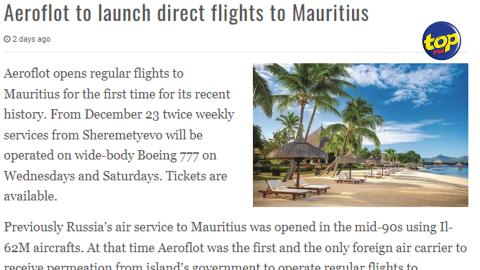 Main picture À partir du 23 décembre : Aeroflot lance des vols directs vers Maurice deux fois par semaine voir plus