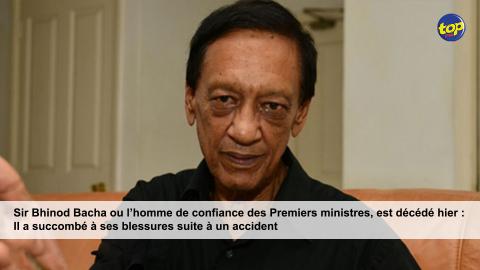 Main picture Sir Bhinod Bacha ou l’homme de confiance des Premiers ministres, est décédé hier : Il a succombé à ses blessures suite à un accident voir plus