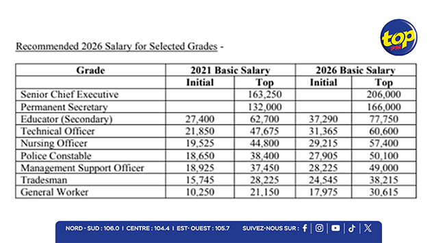 Le coût estimé pour l’État des recommandations, incluant la compensation salariale à compter du 1er janvier 2026 et l’allocation intérimaire de 5 % intégrée au salaire, s’élève à environ Rs 10,9 milliards par an.