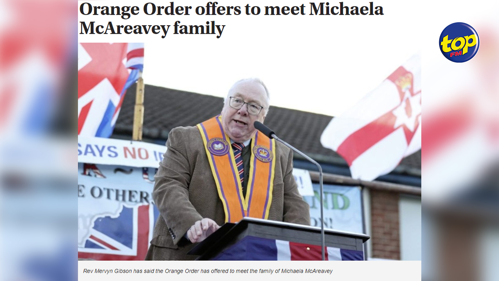 Rev Gibson de The Orange Order dit comprendre que les familles Harte et McAreavy sont blessées par cette vidéo. D’où sa demande de les rencontrer.
