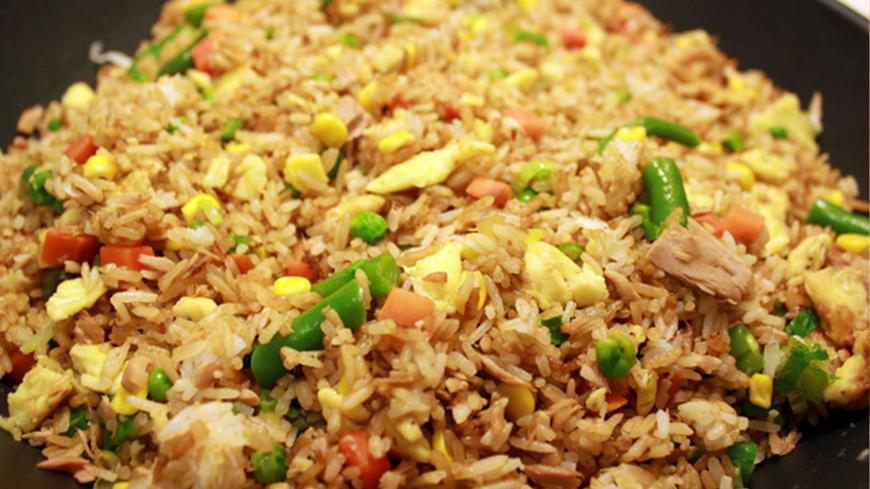 6. Sans plus tarder, ajouter le riz ainsi que la sauce soja. Bien remuer sur un feu vif afin de bien faire sauter le riz. Poivrer et le tour est joué.