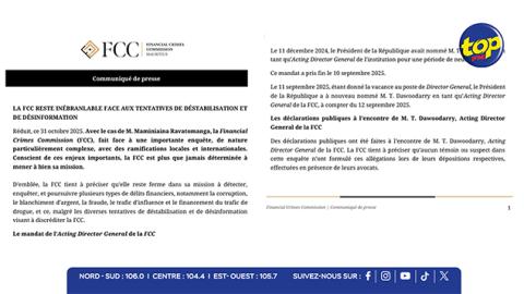 Main picture Affaire Ravatomanga : la FCC contre-attaque et appelle à la fin des manœuvres de désinformation voir plus