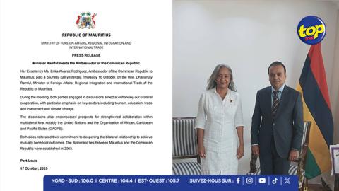 Main picture Diplomatie : renforcement des liens bilatéraux entre Maurice et la République dominicaine voir plus