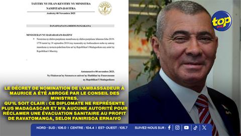 Main picture Affaire Ravatomanga – L’ambassadeur de Madagascar à Maurice limogé : le gouvernement malgache met fin aux fonctions de Camille Vital voir plus