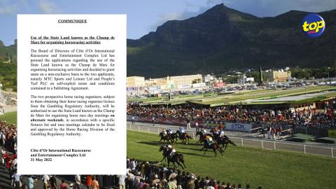 Main picture Courses hippiques : Le Côte d’Or International Racecourse Complex Limited prend le contrôle du Champ de Mars voir plus