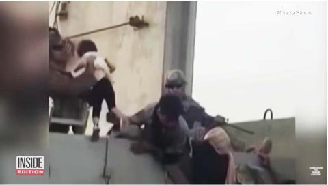 Main picture Une jeune fille remise à un soldat américain sur le mur de l’aéroport de Kaboul voir plus
