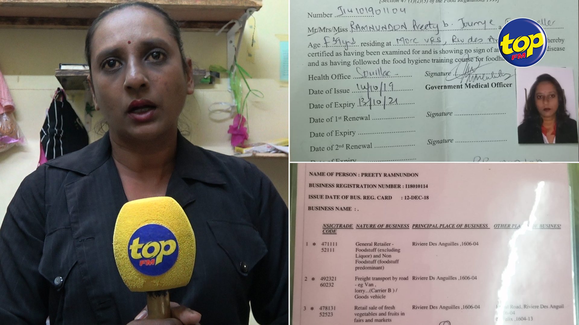 Cette maraîchère expose ses fruits et légumes sous une véranda devant son bâtiment. Elle raconte que samedi dernier, des policiers et des inspecteurs du Conseil de district de Savanne ont débarqué et emporté ses produits sans donner de raison.