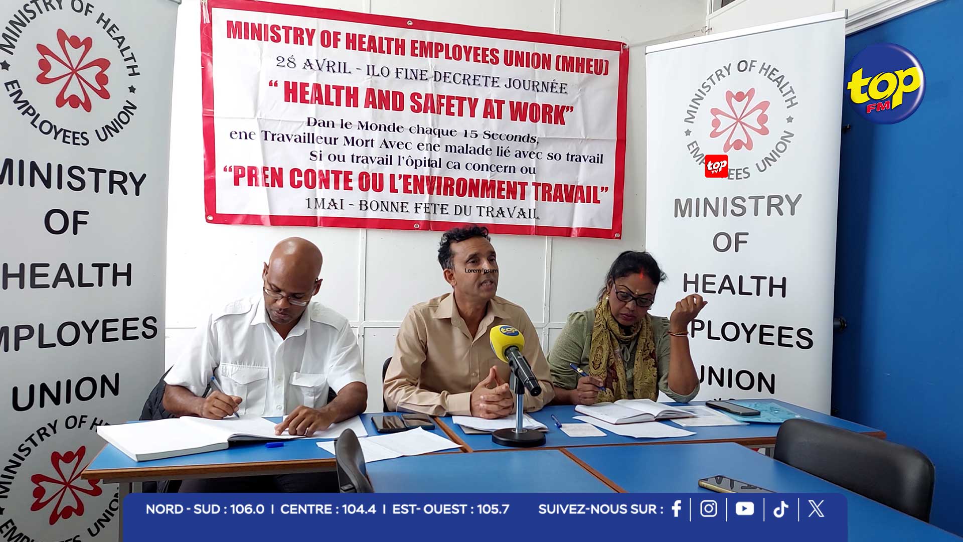 À l’occasion de la Journée mondiale de la sécurité et de la santé au travail, la Ministry of HealthEmployees Union, en collaboration avec la Federation of Public Sector and Other Unions, a tenu une conférence de presse ce 28 avril 2026. Cette rencontre a principalement mis l’accent sur une problématique grandissante : la sécurité et le bien-être des employés du secteur hospitalier, dans un contexte marqué par une montée des violences et des conditions de travail de plus en plus difficiles.