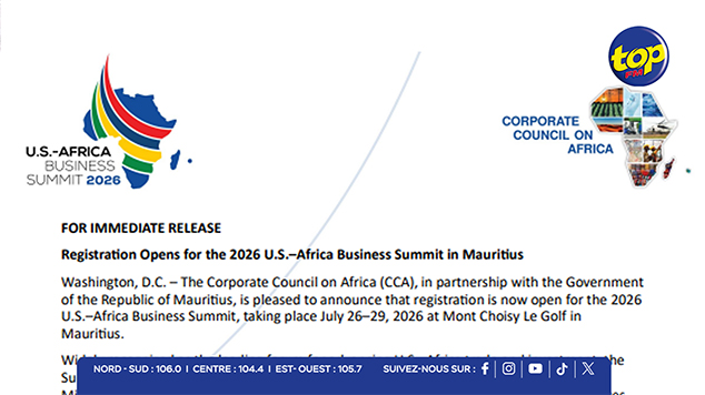 Corporate Council on Africa (CCA), en partenariat avec le gouvernement de Maurice, a officiellement lancé les inscriptions pour le Sommet des affaires États-Unis–Afrique 2026, prévu du 26 au 29 juillet prochain au Mont Choisy Le Golf.