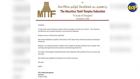 Main picture Covid-19 oblige : La Mauritius Tamil Temples Federation demande à annuler des sessions de prières de groupe dans les kovils voir plus