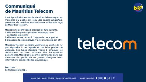 Main picture Arnaques sur WhatsApp : Mauritius Telecom dénonce l’utilisation de son logo… l’opérateur assure qu’il n’utilise pas cette application pour contacter ses clients voir plus