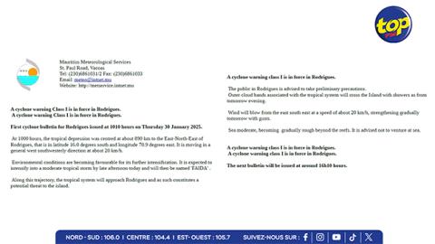 Main picture Alerte 2 à Rodrigues : la dépression tropicale se situe à 550km de l’ile, de la pluie attendue dans l’après-midi voir plus