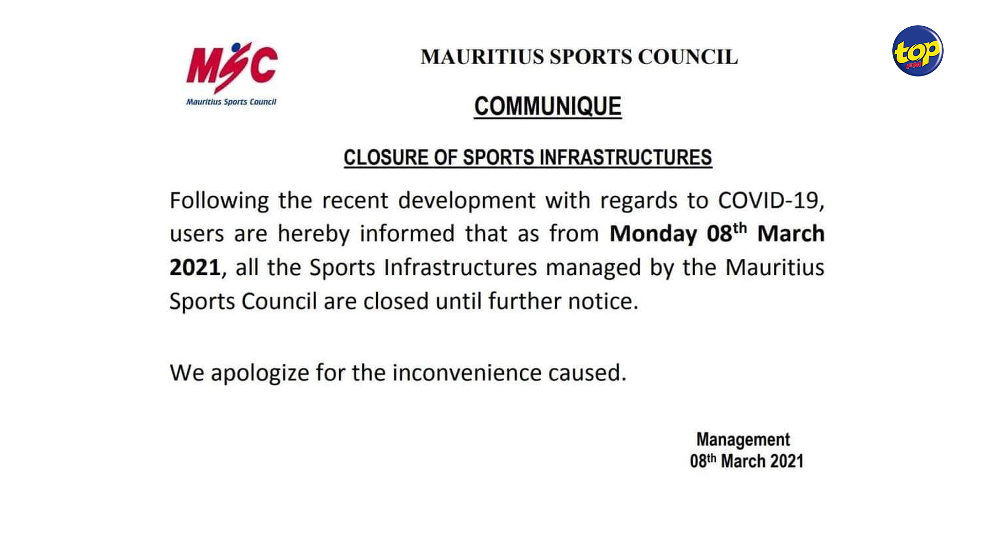 C’est ce qu’indique la direction de la Mauritius Sports Council dans un communiqué.