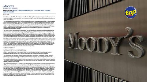 Main picture Moody’s rétrograde Maurice de Baa2 à Baa3 : Une baisse dans la qualité et l’efficience des institutions et le policy making ont affaibli la capacité de Maurice à absorber les chocs économiques, soutient l’agence de notation voir plus