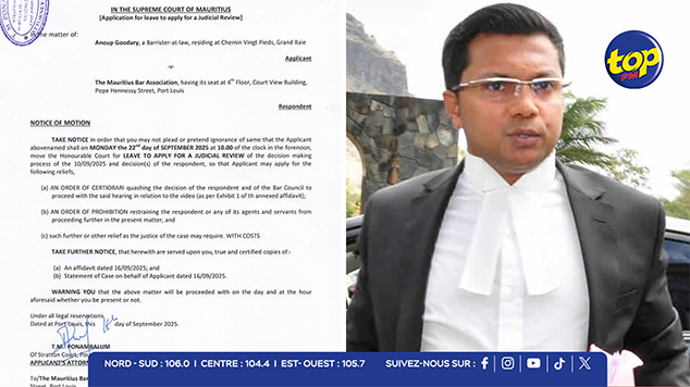 L’avocat Anoup Goodary a déposé, ce mardi 16 septembre 2025, une demande de judicial review devant la Cour suprême de Maurice contre la Mauritius Bar Association (MBA), remettant en question la régularité de la procédure engagée à son encontre par l’association.