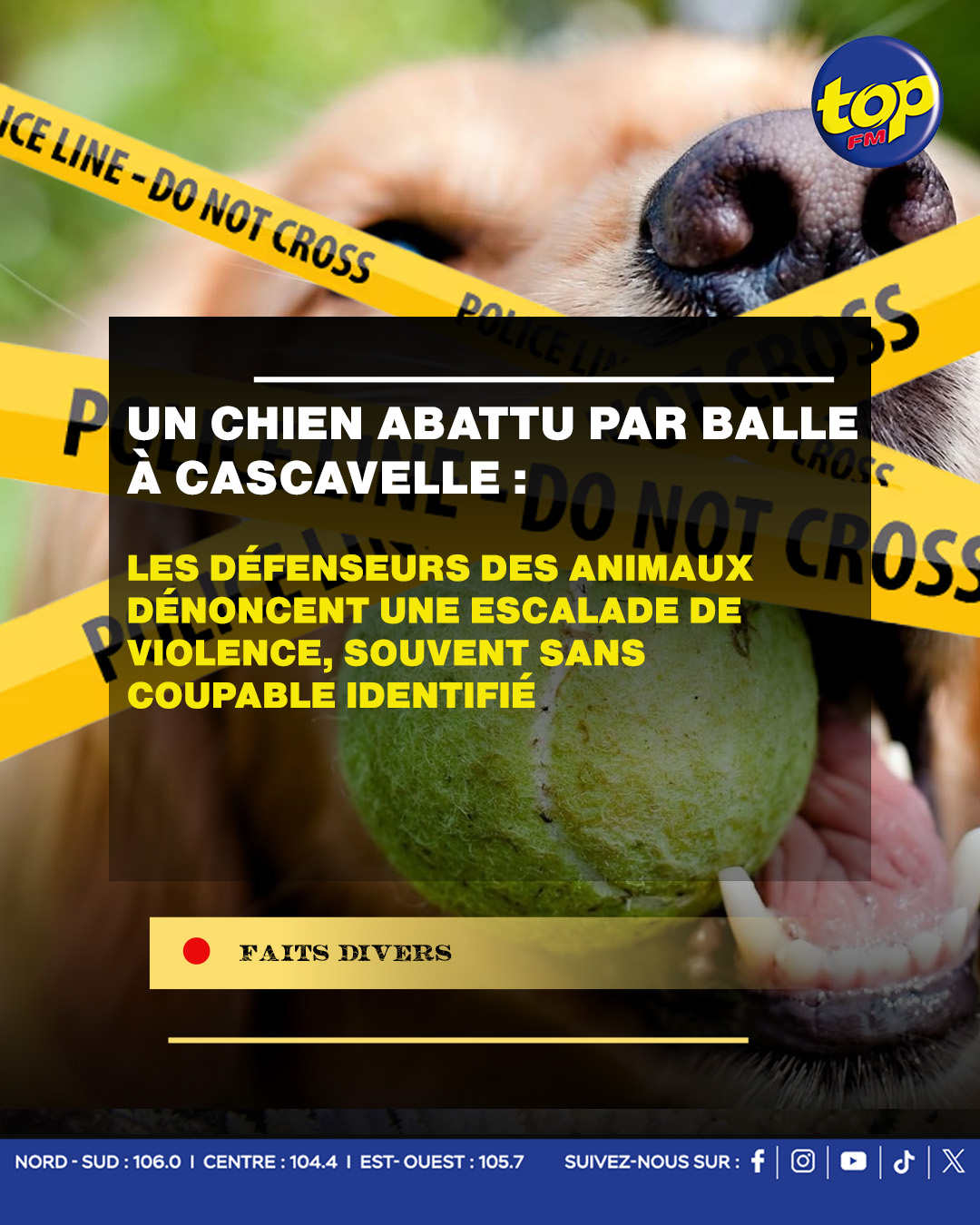 Un chien a été abattu de sang-froid par balle, lundi soir, sur un chantier de construction à Cascavelle. L’auteur du tir, toujours non identifié, fait l’objet de recherches policières. Le drame suscite une vive émotion parmi les défenseurs des animaux et les ONG.
