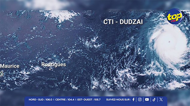 Concernant le cyclone Dudzai, le prévisionniste précise qu’il s’est réintensifié en cyclone tropical intense. Il se déplace actuellement vers l’ouest à une vitesse d’environ 13 km/h, avant de courber progressivement vers le sud-ouest. Cette trajectoire le rapprochera de Rodrigues dès lundi, avec un passage estimé à 100 km au sud-est de l’île.